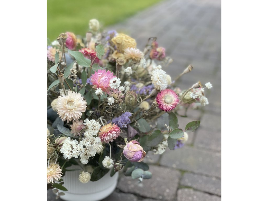 Starostlivosť: Naše aranžmány zo sušených kvetov Ti vydržia niekoľko mesiacov. Netreba sa o ne špeciálne starať. Stačí ich dať na suché miesto, ideálne nie na priamom slnku.