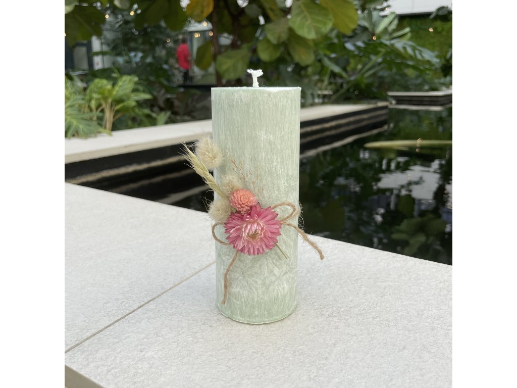 Našou filozofiou je podpora lokálnych produktov a producentov. Preto nás nesmierne teší spolupráca s Alora_candles. Zuzka je zo Žiliny a palmové sviečky vyrába s obrovskou láskou a citom pre detail. Pripravila priamo pre nás limitovanú edíciu sviečok, kde sú použité nami vypestované kvety. Sviečka horí min. 40 hodín.