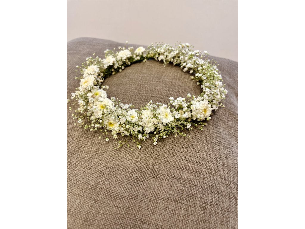 Čoraz populárnejšiu korunku do vlasov Vám vieme pripraviť z čerstvých, ale aj sušených kvietkov. V prípade záujmu si farebnosť a štýl spolu doladíme. Stačí nás kontaktovať. Cena závisí od druhu použitého materiálu, prevedenia a veľkosti.