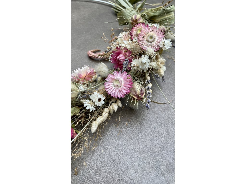 Veniec zo sušených kvetov, ktoré sme od semienka vypestovali na našej farme. Takýto veniec vydrží min. 1 rok pokiaľ nebude na priamom slnku a vlhku. Veríme, že tak ako nám robila radosť jeho výroba, bude tešiť aj Vás pohľad na neho.