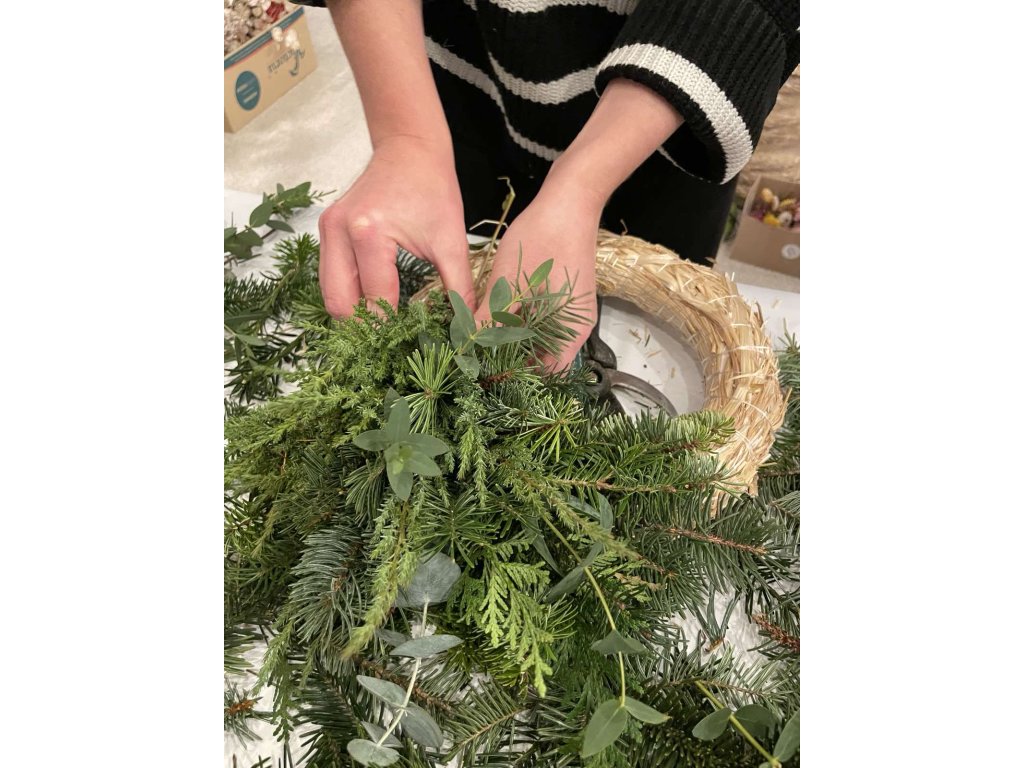 Workshop je určený aj pre úplných začiatočníkov. Vence si spolu uvijeme z neopadavej čečiny (borovica, tuja, jedlička, strieborný smrek...), eukalyptusu a dozdobíme podľa Tvojich preferencií.